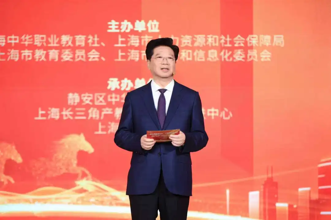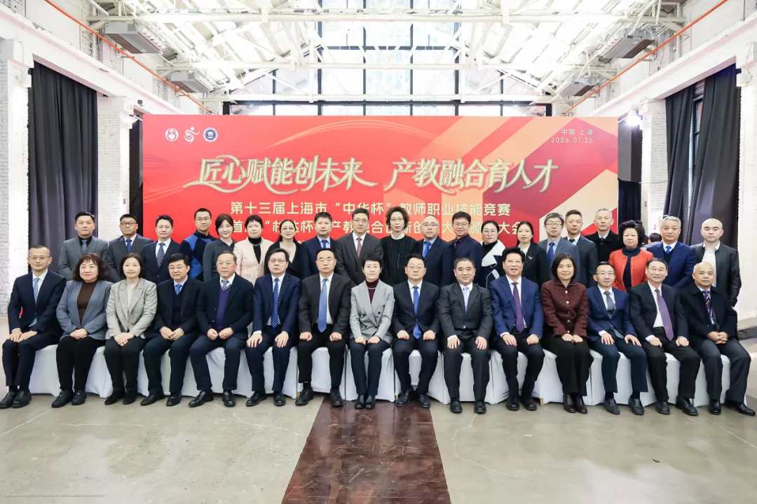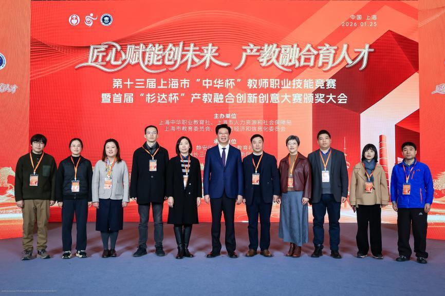 1月25日,第十三届上海市“中华杯”教师职业技能竞赛暨首届“杉达杯”产教融合创新创意大赛颁奖大会,在静安“800秀”创意产业园区举行。大会以“匠心赋能创未来,产教融合育人才”为主题,集中展示了上海在深化产教融合、培育高素质技术技能人才方面的探索与成果。上海市副市长、上海中华职业教育社主任解冬出席并讲话,市政府副秘书长周亚明,中共上海市委统战部常务副部长、市政府侨办主任王霄汉,中共静安区委书记钟晓咏等有关领导出席活动。出席活动的领导嘉宾还有,上海市教育委员会副主任赵震,上海中华职业教育社常务副主任、上海市政府参事胡卫,上海中华职业教育社副主任、浦东新区人大常委会副主任李国华,上海中华职业教育社副主任,上海体育大学党委副书记、校长毛丽娟,上海中华职业教育社副主任丁光宏,上海中华职业教育社副主任,上海市人力资源和社会保障局副局长谭友林,中共上海市静安区委常委,区委统战部长顾定鋆,上海市政府重大行政决策咨询专家、上海市民办教育协会会长高德毅,上海杉达学院党委书记李蔚,上海中华职业教育社副主任,上海师范大学天华学院理事长叶才福,上海中华职业教育社副主任,上海克而瑞信息技术有限公司董事长丁祖昱。 以赛育才担使命 服务发展谱新篇