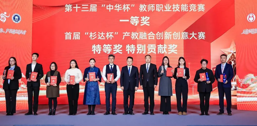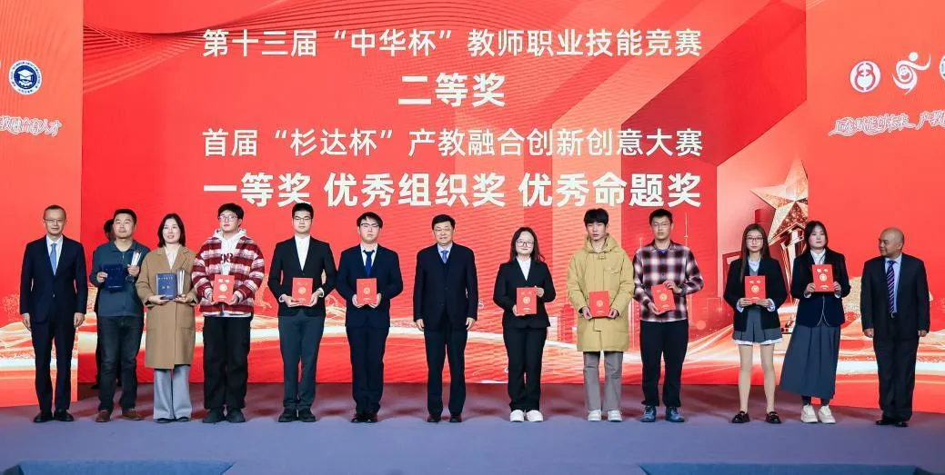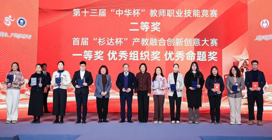 活动现场为获奖选手代表、表彰单位代表进行了颁奖,激励更多院校师生和行业企业在职业教育发展中勇担使命、再创佳绩。解冬为“中华杯”竞赛突出贡献奖、优秀组织奖,“杉达杯”大赛杰出贡献奖获奖代表颁奖。